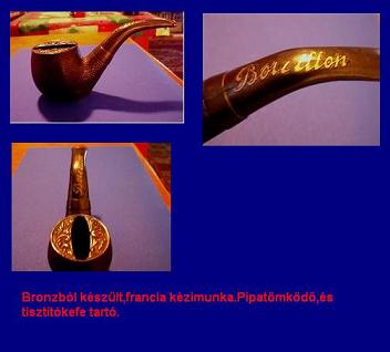 Ez egy francia,bronzból készült pipatömködő,és tisztítókefe tartó.