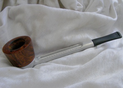 A gyökeret talán nem "kapta meg",de a felület elég masszívan el van szenesedve! Egyébként konkrétan egy Vauen Barontini-ről van szó ,ami egy Rhodesian bent Army (ál)spigott.Homokfúvott,de a perem sima, lakozott,enyhén csapott.Túl nagy gond nem lehet,csak "esztétikailag" picit zavar.Többi pipámnál is jellemző "betegség " ez,de azokon valahogy,a perem vékonysága miatt nem túl feltűnő.