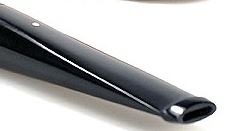 Igen, úgy írják, hogy a pipa teljes hosszában, átmenően ennyinek kellene lennie a füstjárat átmérőjének. Én azért ettől a "szabálytól" eltekintek, a szárat még nem fúrtam fel soha. Dunhill szopókája ügyben nem kell semmi különösre gondolni. egyszerűen csak egy bő, élek nélküli kiömlőnyílás. A minőségibb pipák acryl szopókájának is ilyen a vége, de rengeteg esztergált ebonit szár esetén már nem veszik a fáradtságot az ilyen finom munkák elvégzésére. Egyszerűen csak metszenek bele egy szögletes "rés"-t amin még a tisztítószálat is képtelenség áttolni. |