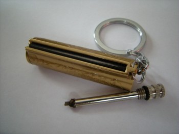 Olyan anyag van a testen, illetve a gyufaszál végén, ami egymáshoz dörzsölve (pont úgy kell végighúzni, mint a hagyományos gyufánál) szikrázik és begyújtja a benzint (a "túlélő", vagy kemping szikravetőhöz hasonlatos). Ha megfelelő menniységű tüzelőanyag van a testben elhelyezett anyagban (mint a benzines gyújtókban is), némi gyakorlás-próbálgatás után elsőre gyullad. Ahogy látható kulcstartóként is funkcionál.