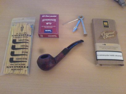 Gallwitz-ban vettem, Savinelli Capitol 005-t, tömködőt, filtert és egy csomag Original Choice-t. Hazaérve kb. olyan izgalommal fogtam neki, mint amikor általános iskola 5.-ben a vasúti töltés mögött először rágyújtottam egy cigire. :)