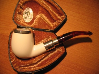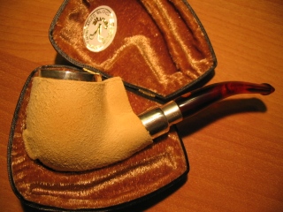 Haladok végre az új tajtékpipám fejének bőrbe varrásával. Ilyen volt: |