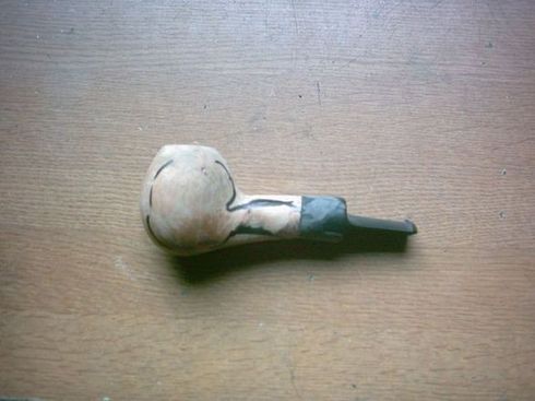 Sziasztok, meglett a jelszom, ma elökerültek a regi szerszamaim, es gyorsan faragtam egy nagy otromba pipat, de filctollal berazolgattam az uj format van anyag benne, meg lehet alakitgatni...Foto: