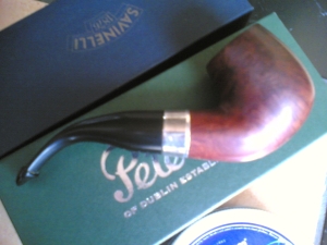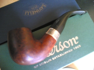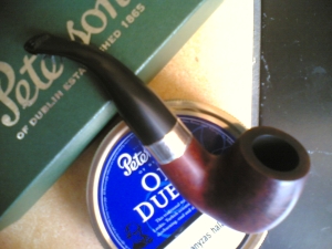 Bejáratva Old Dublinnal. Hibátlan fej, furat, karbon, szár és csap. Hibátlan illesztés, és finish. A tűztér teteje enyhén befeketedett. Peterson szopókás! 2 éves pipa. Kiszáradt gyökér, jó ízű (latakiára állítva).