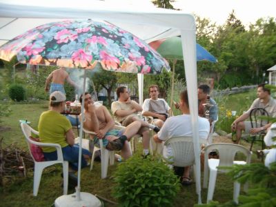 Többieknek. Szóval hétvégén összeült a fele brigád egy kis őzpörköltes ragus mittoménmi zabálására, grillezésre, kolbászsütésre, meg némi sörital lelkes fogyasztására itt a vidéki rezidenciánkon. Házigazda mocskos pofátlan volt, mert reggel betolt valami pálinkát, aztán este 9-ig csak kisrókákat tenyésztett, de külsős megfigyelők alapján a brigád megtalálta a sörtbort, mindent felzabált, otthon érezte magát, oszt mire felébredtem, arra jól hazamentek.